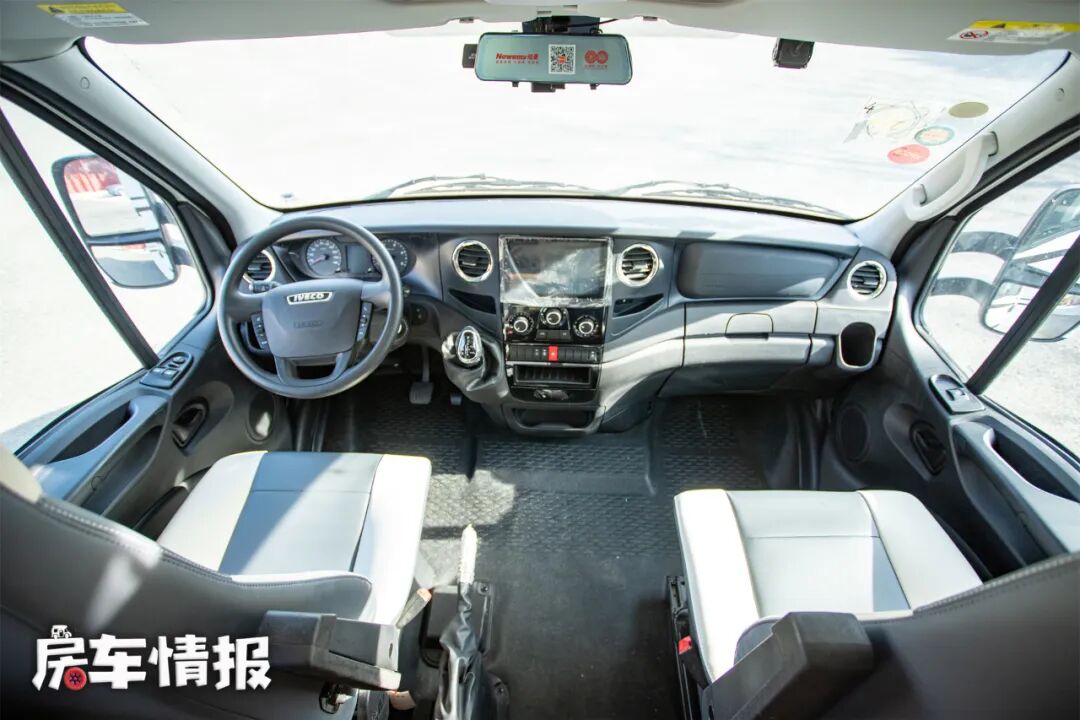 驾驶室内采用现代化布局设计,装有多功能方向盘、液晶中控显示屏、流媒体后视镜、主副驾驶安全气囊等设备,还有电动后视镜加热、ESP9.0、倒车雷达、倒车影像、车道偏离预警等功能,让驾驶更加安全。座椅采用悬浮式设计,在行车过程中能减少路面带来的颠簸。挡杆安装在了中控台下方,既方便了驾驶也能为主副驾驶中间留出空间,方便从驾驶室直接进入生活区,如果遇到泥泞、复杂的户外天气,能为驾驶员带来更多便捷。