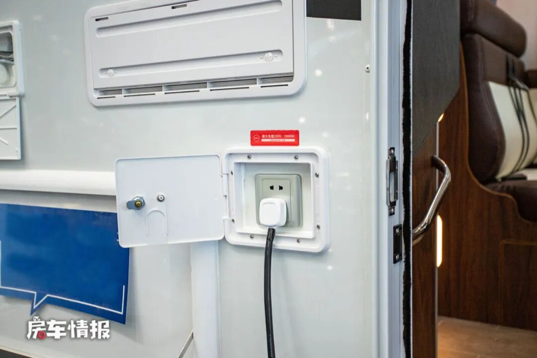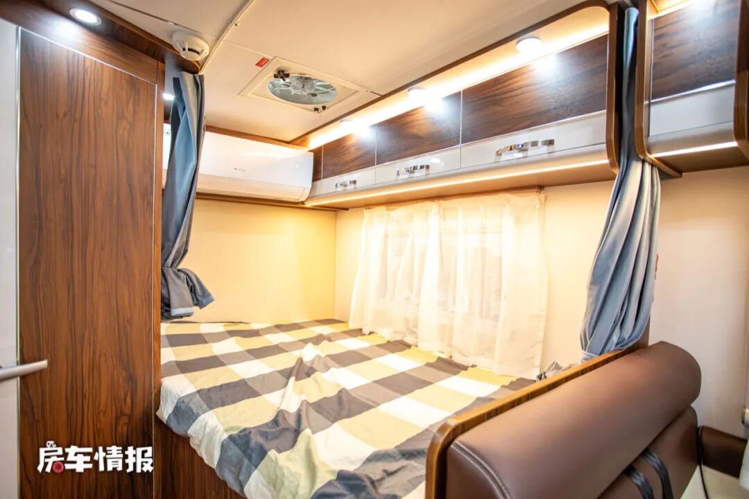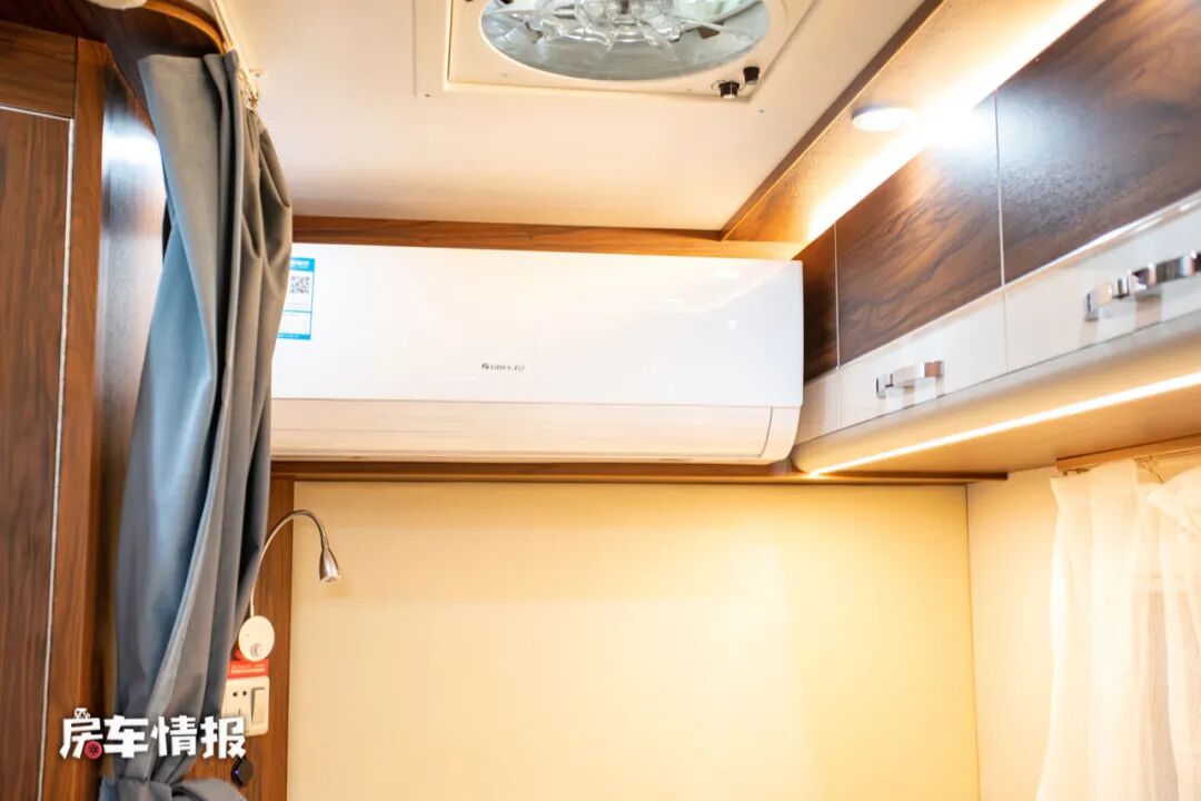 床尾处上方悬挂了一台家用变频空调,随时调节车厢内部的温度,操作也比较简单。