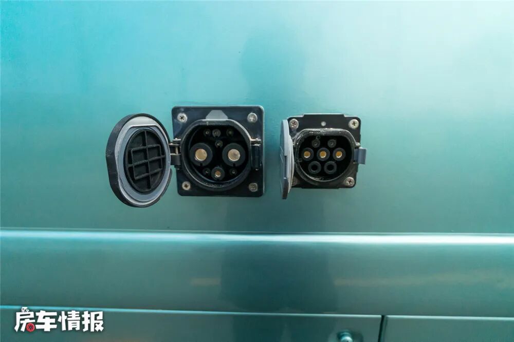 车身外部提供了新能源充电口,并且是带有220V标准充电口和380V直流快充口,如此以来可以更加便捷的为车内充电,这款自身的电源系统就十分强大,提供了6000W的充逆变一体机,1000W太阳能板、8000W超静音发电机和350V90Ah电池(相当于31.5度电),可以解决日常使用的用电需求。