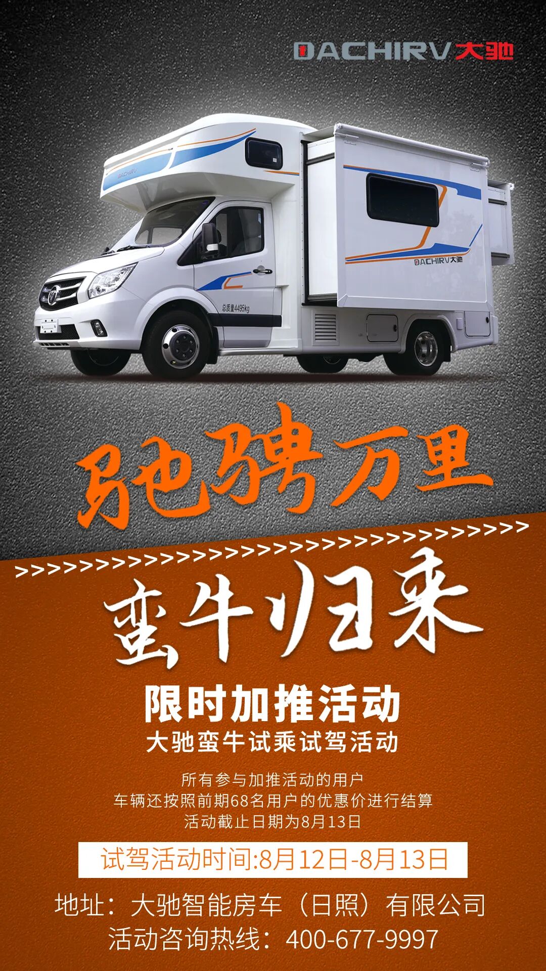 大驰房车诚邀前期有购买意向的车友来厂试乘试驾!
