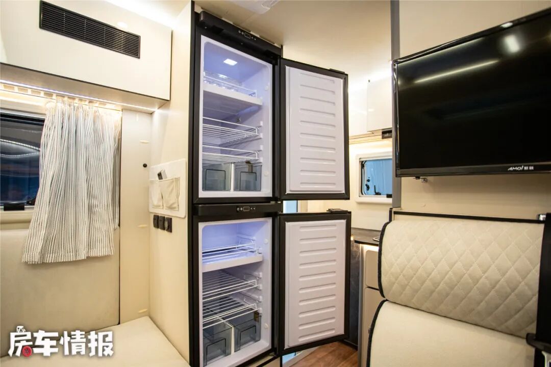 除此以外这款车还提供了3000W逆变器、150L净水箱、35L防冻水箱、50L灰水箱和5KW燃油加热器、驻车暖风暖水系统等,基本上可以解决旅行中的使用问题。