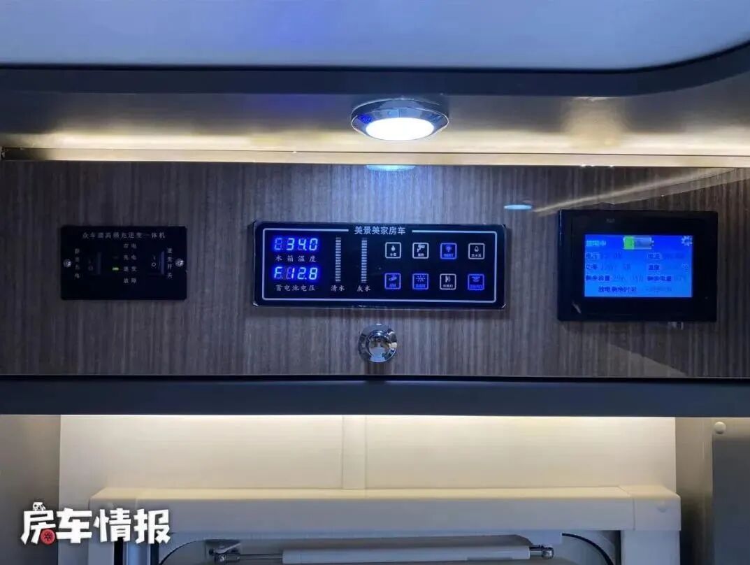 水电路上,这款车提供了260升的净水箱、83升的灰水箱、3000瓦逆变器、1000安时锂电池(相当于自带12度电)、以及1100瓦的如果新能源电池板,采用单晶硅足功率的太阳能电池板,可以为房车的电力提供更多保障,并且还提供五年的质保服务,后期有更多用电需求,还可以选装1200安时的锂电池和1900瓦带电动伸缩功能的太阳能板。