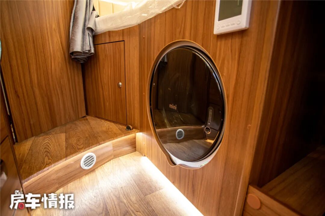 另外在床板下方还嵌入了一台小型的洗衣机,日常也可以清洗一下贴身的衣物。