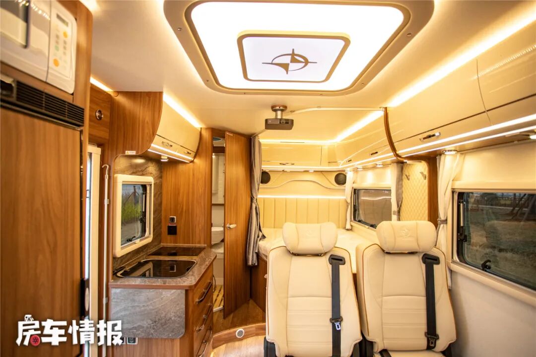 既然作为一款高品质的房车,车内的内饰一定不能含糊,整辆车内部的装饰完全称得上豪华二字,加上暖色系的氛围灯,将整车的气氛烘托的特别有感觉。
