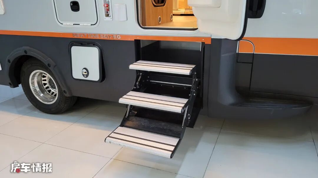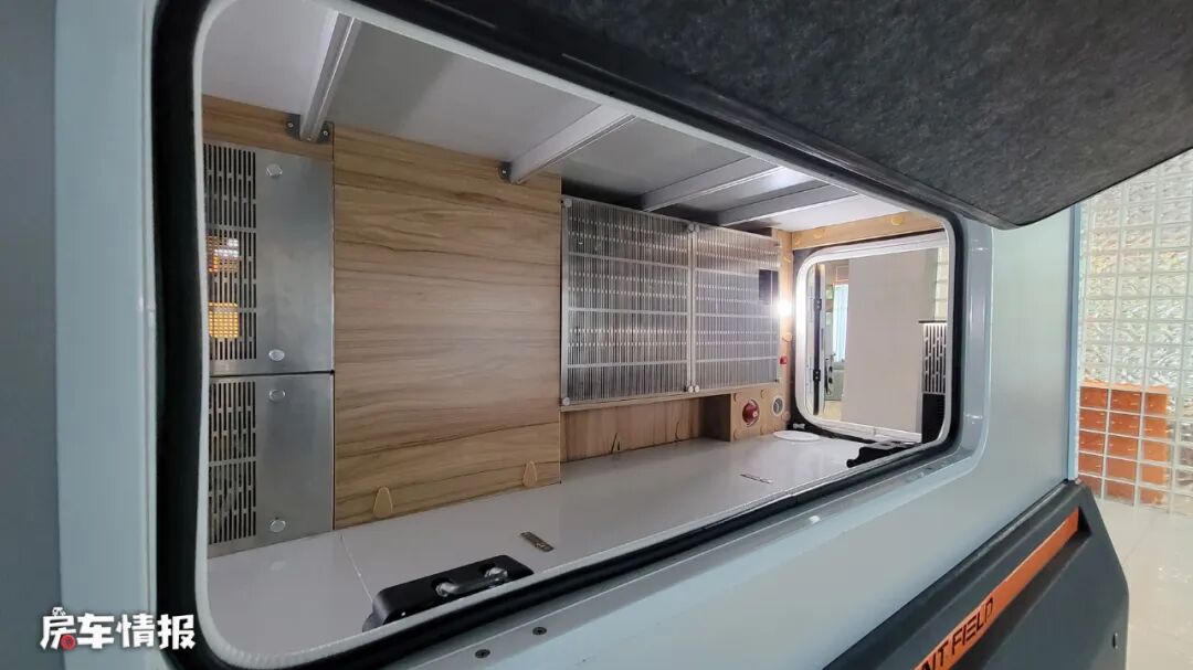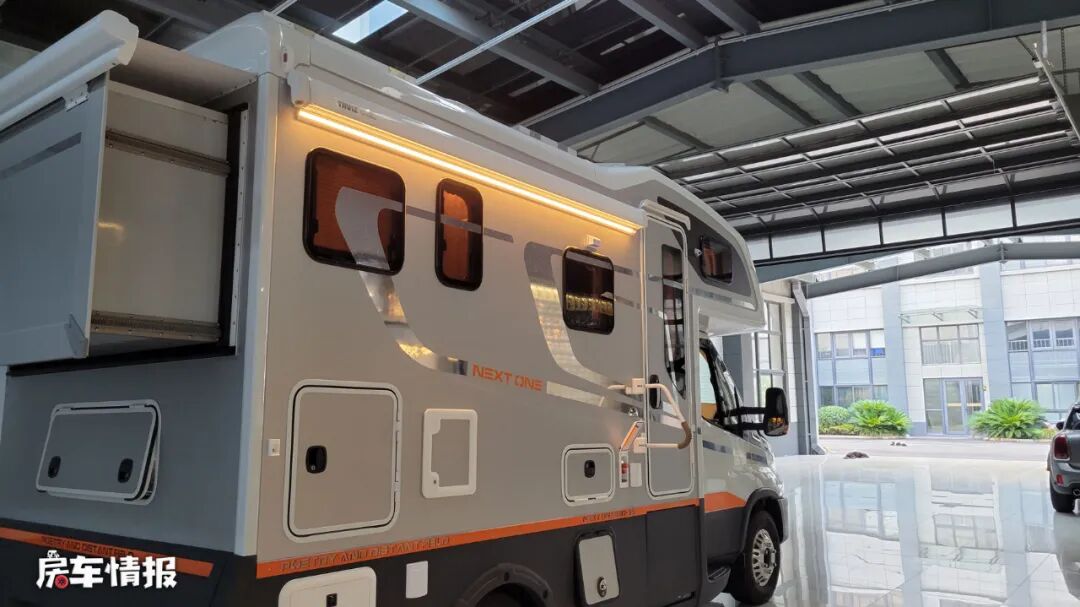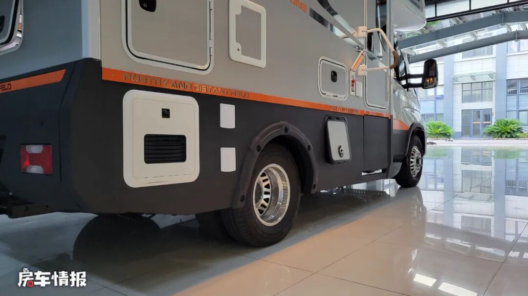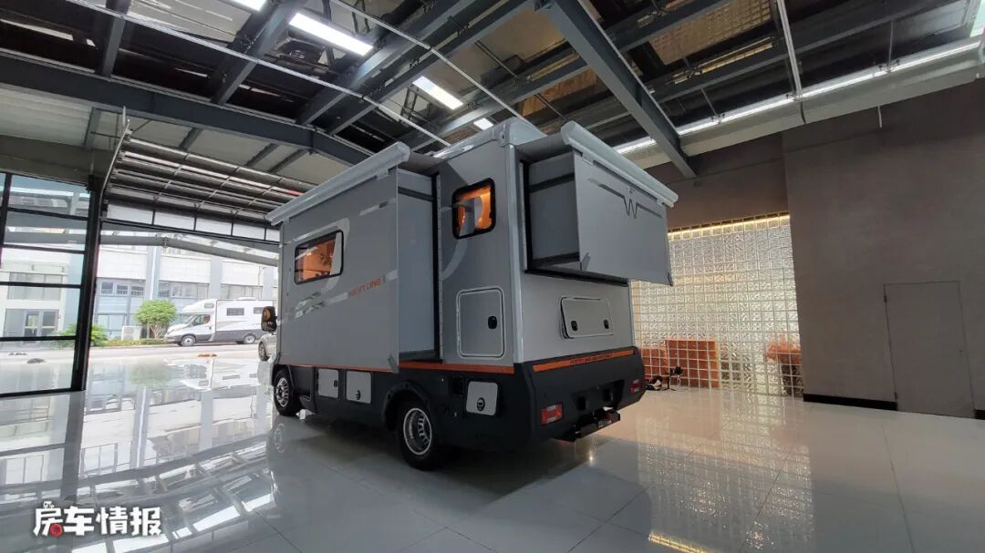 车身外部配有基础的配置,包括手动的遮阳棚、三开门设计的贯通式行李舱、燃气接口、水电接驳口等,能够满足日常在外的生活需求。