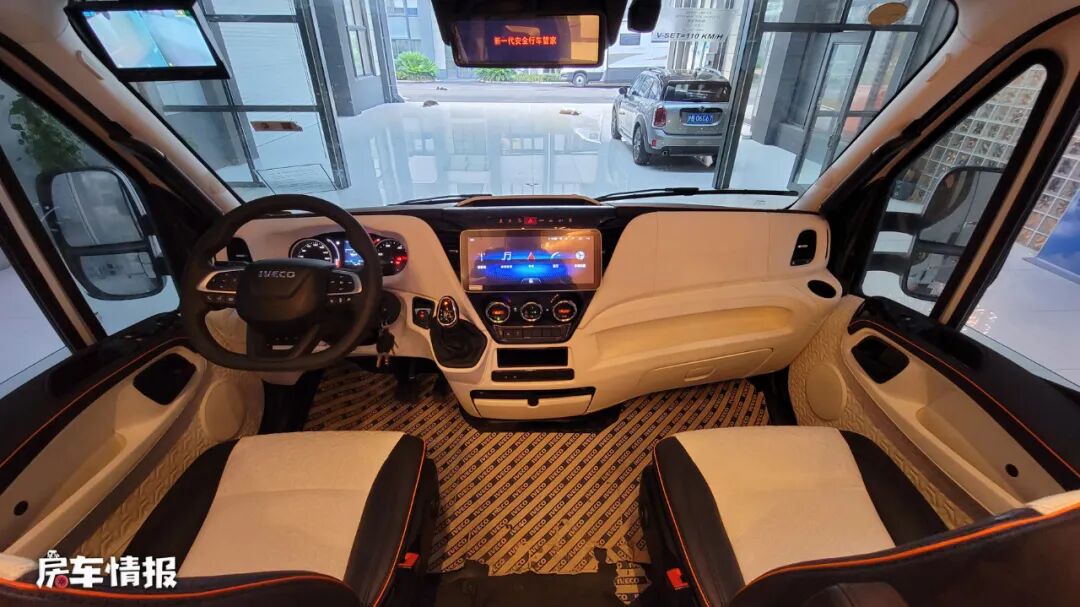 造型上,这款车非常的圆润饱满,看起来就很“高大威猛”,整体的车身尺寸5998*2530*3385毫米,相较于主流的依维柯车型要略微有些大,不过整体上还是能够满足蓝牌C本的驾驶规定。