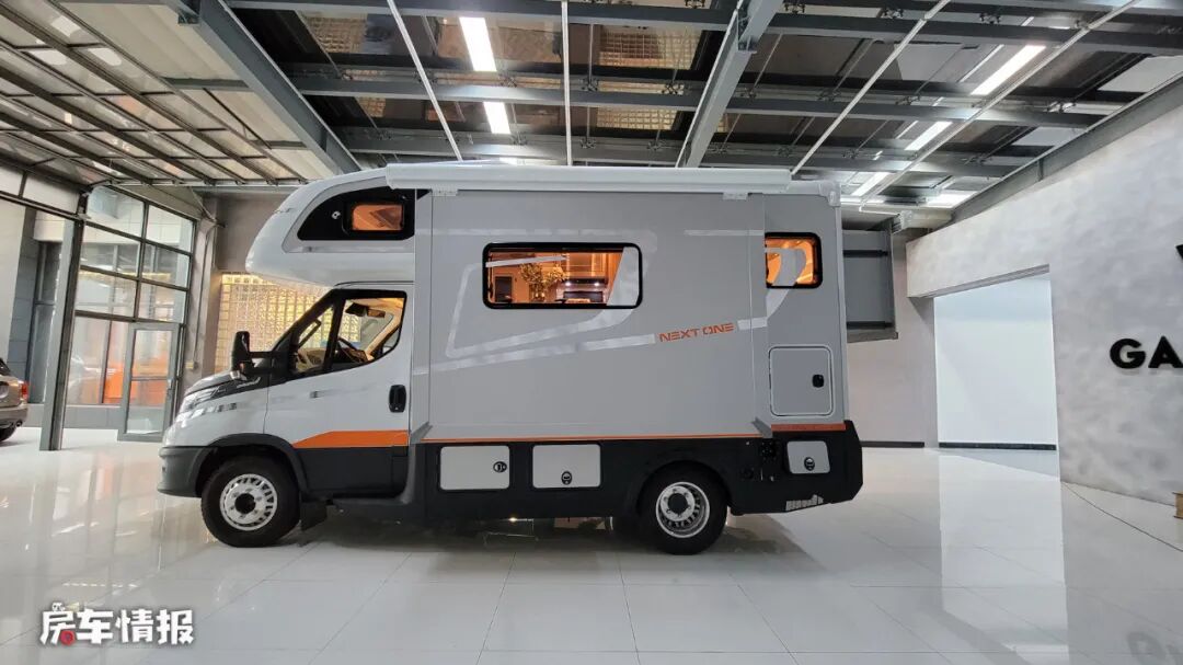 这款新车就是来自于伟昊的卡漠兹-NEXT590-SG双拓展车型,整辆车是基于6.5吨进口依维柯NewDaily底盘所打造的,除去非常具有辨识度的五排点阵式前格栅之外,这款车还加入了碳纤维的包覆装饰,特别像国外的越野房车,不仅提升了美观度同时也自带豪华范儿。