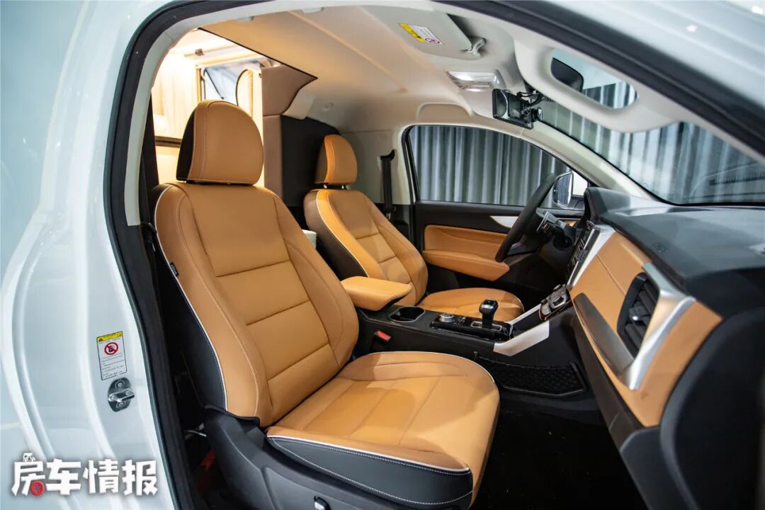览众房车也是在房车企业中将驾乘感受提高到SUV级别的行业翘楚。自由炮C驾驶室内部的设计延续了自由炮整体风格,柴油款马鞍棕的内饰配色,提升了整个驾驶室的豪华感,电子挡杆、倒车雷达、座椅电动调节、右前盲区监测等配置也提升了驾驶的便利性和舒适性。