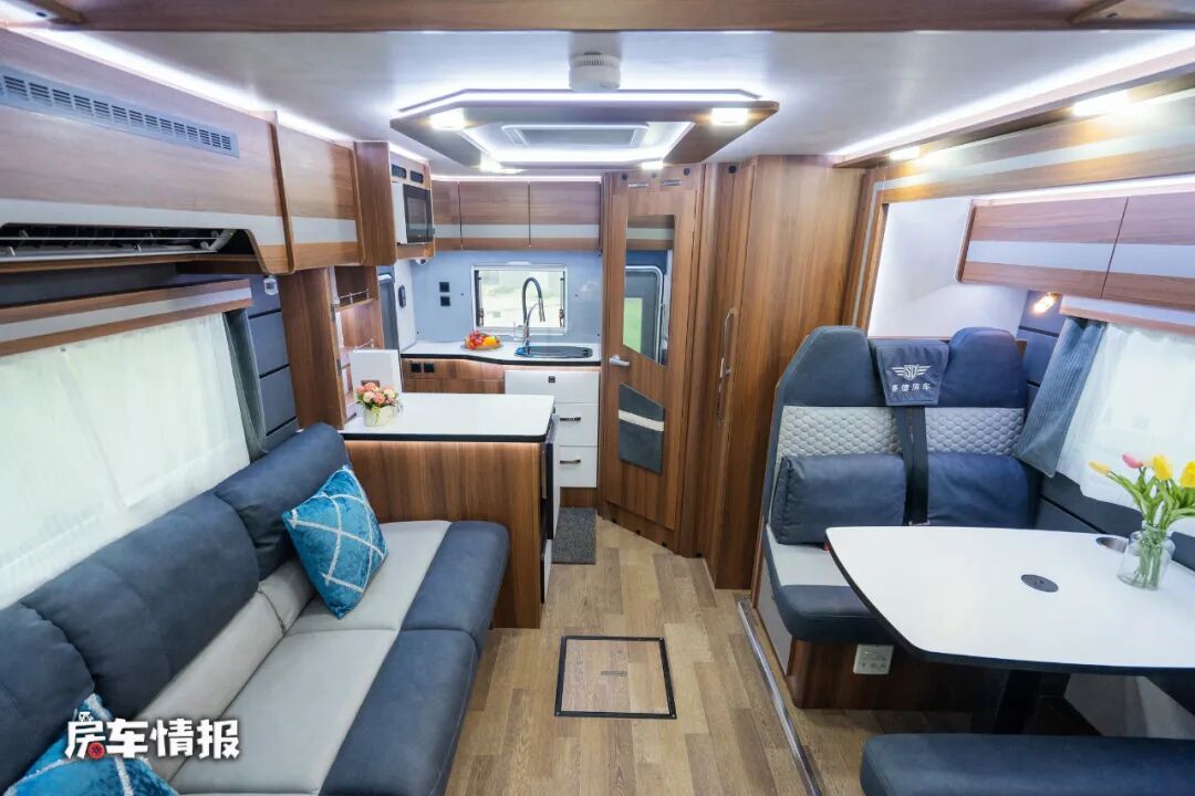 新车是搭载了6.5吨的国产依维柯欧胜底盘所打造的,相较之下,全车的承载力更强,平稳性更高,车身尺寸方面,常看高分别为5995*2450*3150毫米,和主流的C型房车保持一致,能够满足蓝牌C本的驾驶规定。