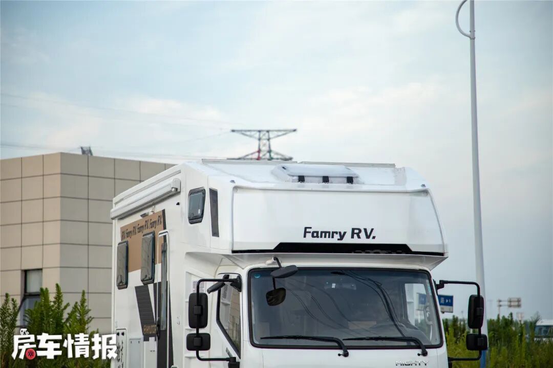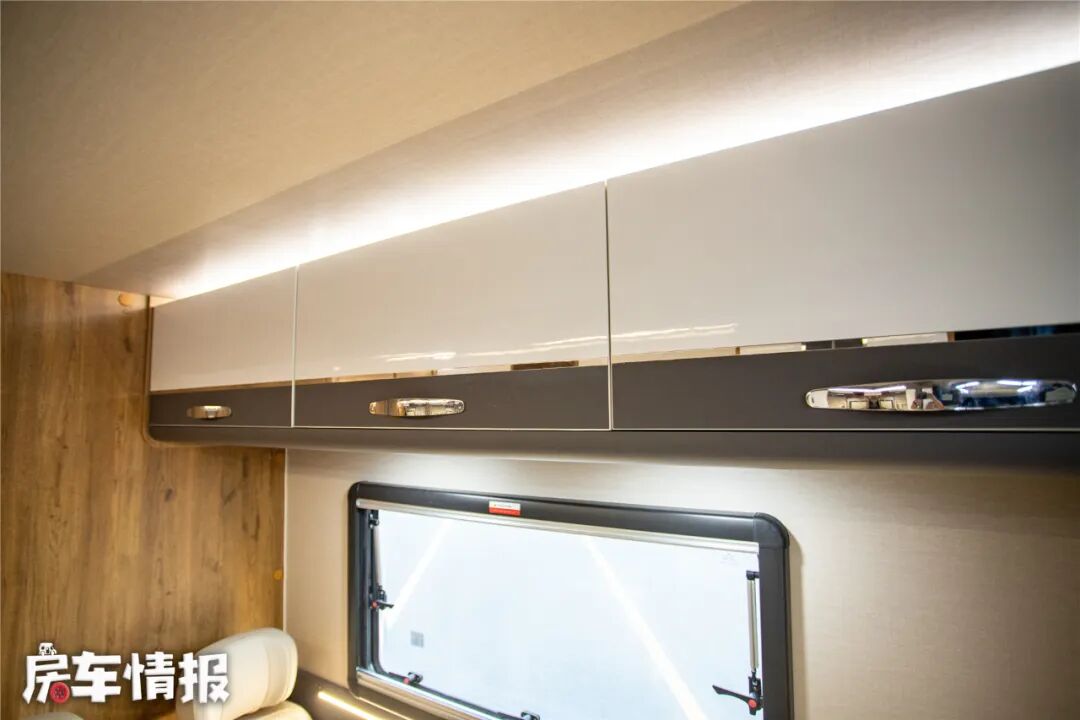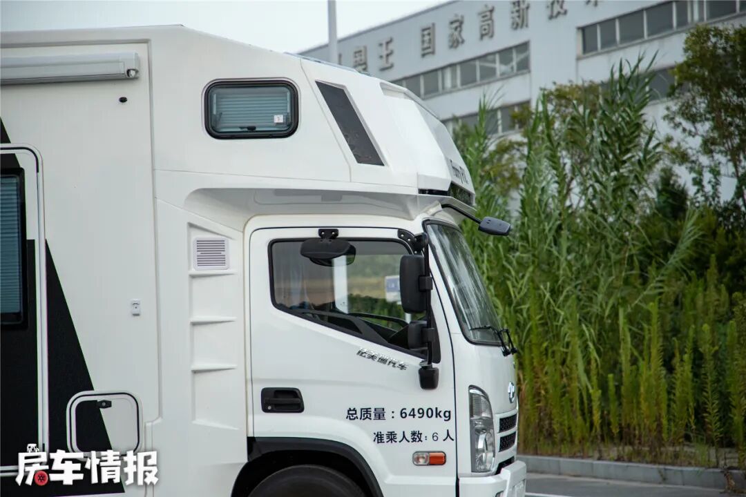 和主流的轻卡房车相比,这款车在外观上看起来更加的轻盈,因为顶部的额头并非完全方方正正的设计,而且加入了更多有棱角的线条,看起来更加的有机械感。