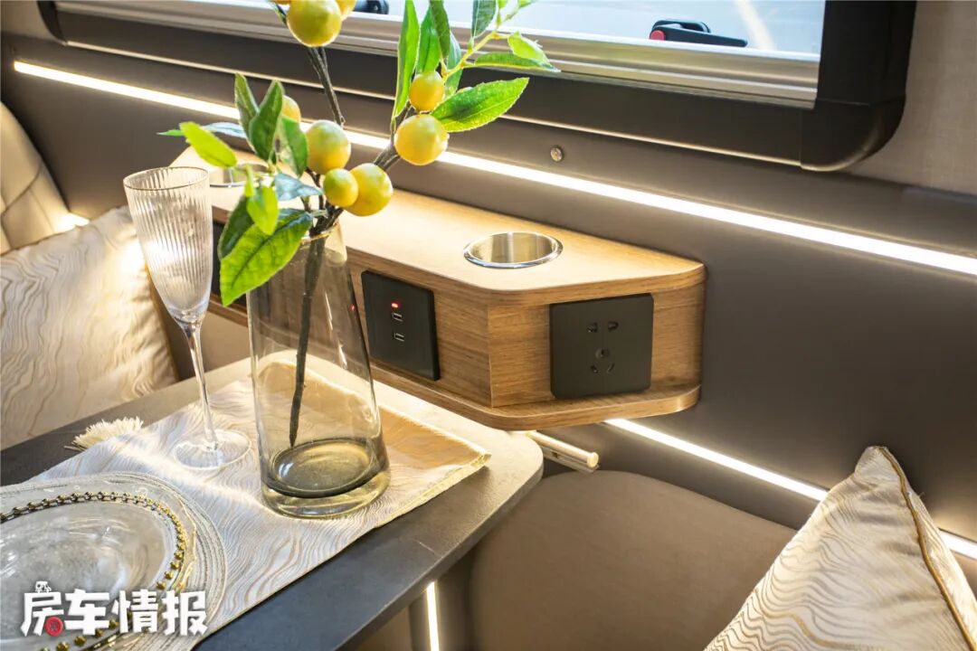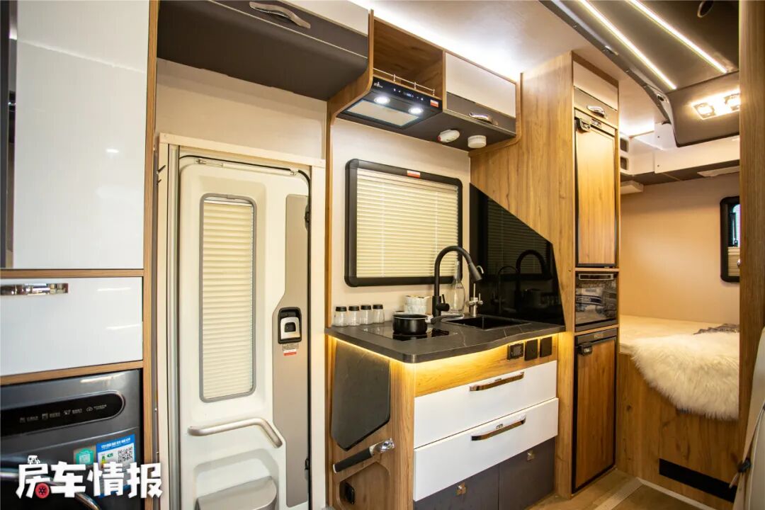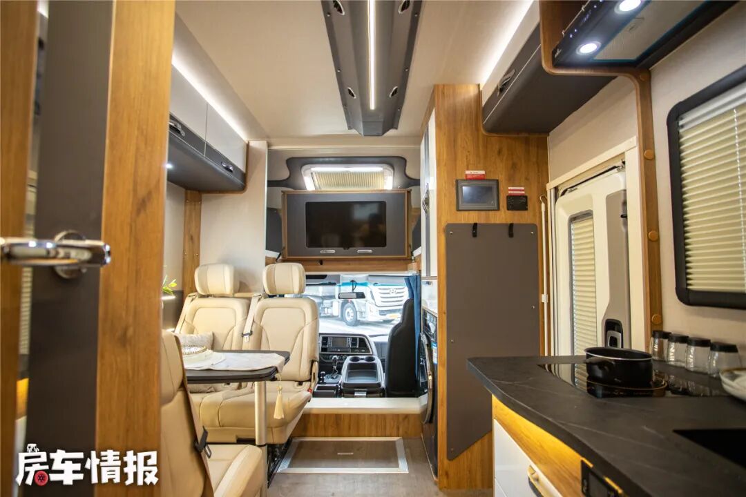 车内的设计有点“原生态”的感觉,采用了原木配色的家具,整体风格都比较的田园风,得益于底盘的尺寸,内部的空间表现也还不错。