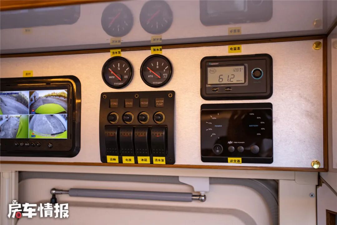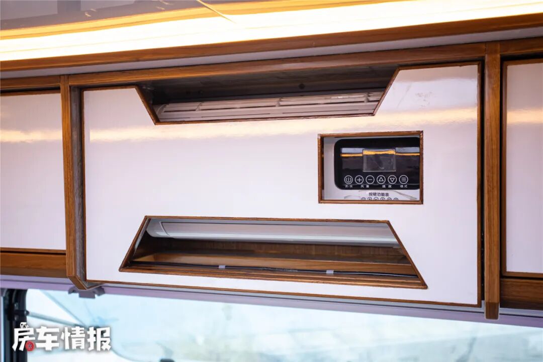 水电路方面,这款车是提供了3千瓦的逆变器、400安时的磷酸铁锂电池、1020瓦的太阳能电池板、225升清水箱和70升灰水箱,另外车内还提供了暖风热水一体机以及12付房车专用空调,能够保证正常的使用车辆。
