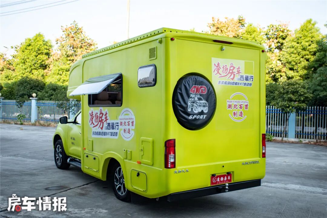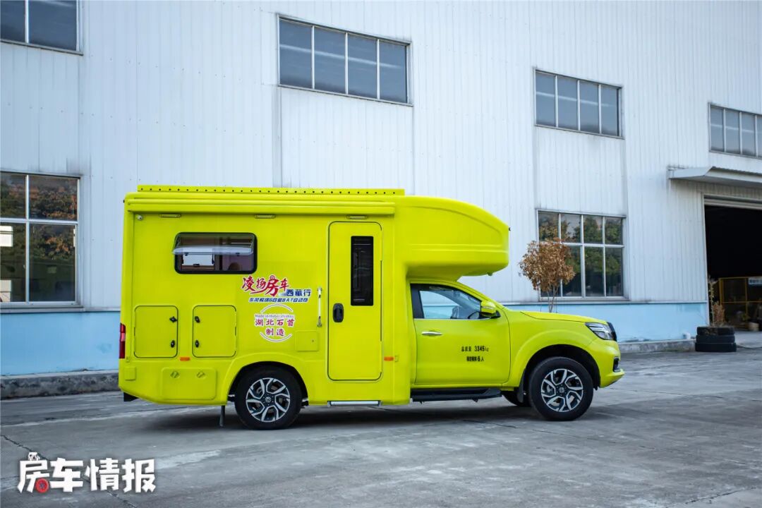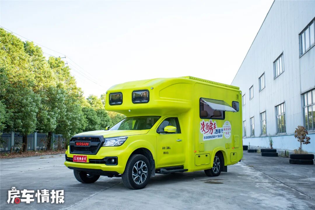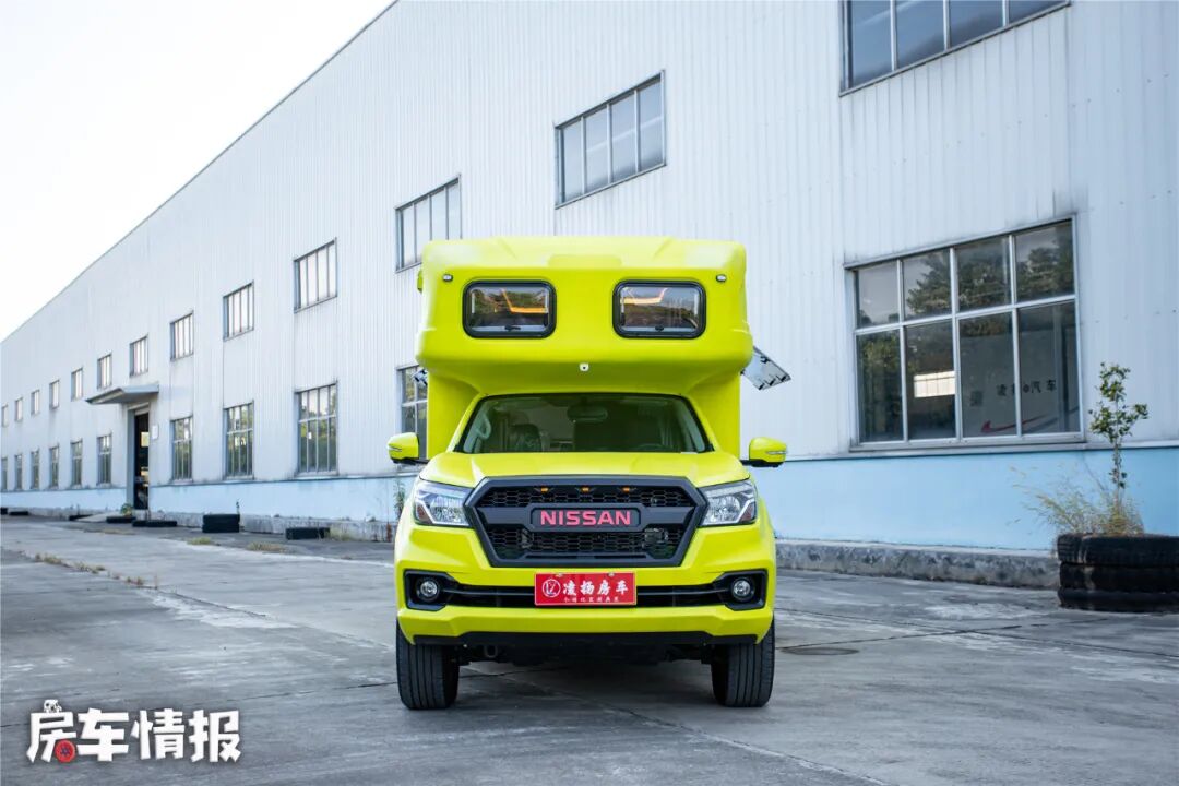这款车就是来自凌扬房车推出的搭载日产锐骐6底盘所打造的一辆的皮卡房车,外观发面,独特的荧光黄色为整辆车赢得了不少目光,在当下百家齐放的房车市场中,这样大胆的配色还是第一次见到,尤其在这种炎炎夏日,给人一种十分年轻有活力的感觉。