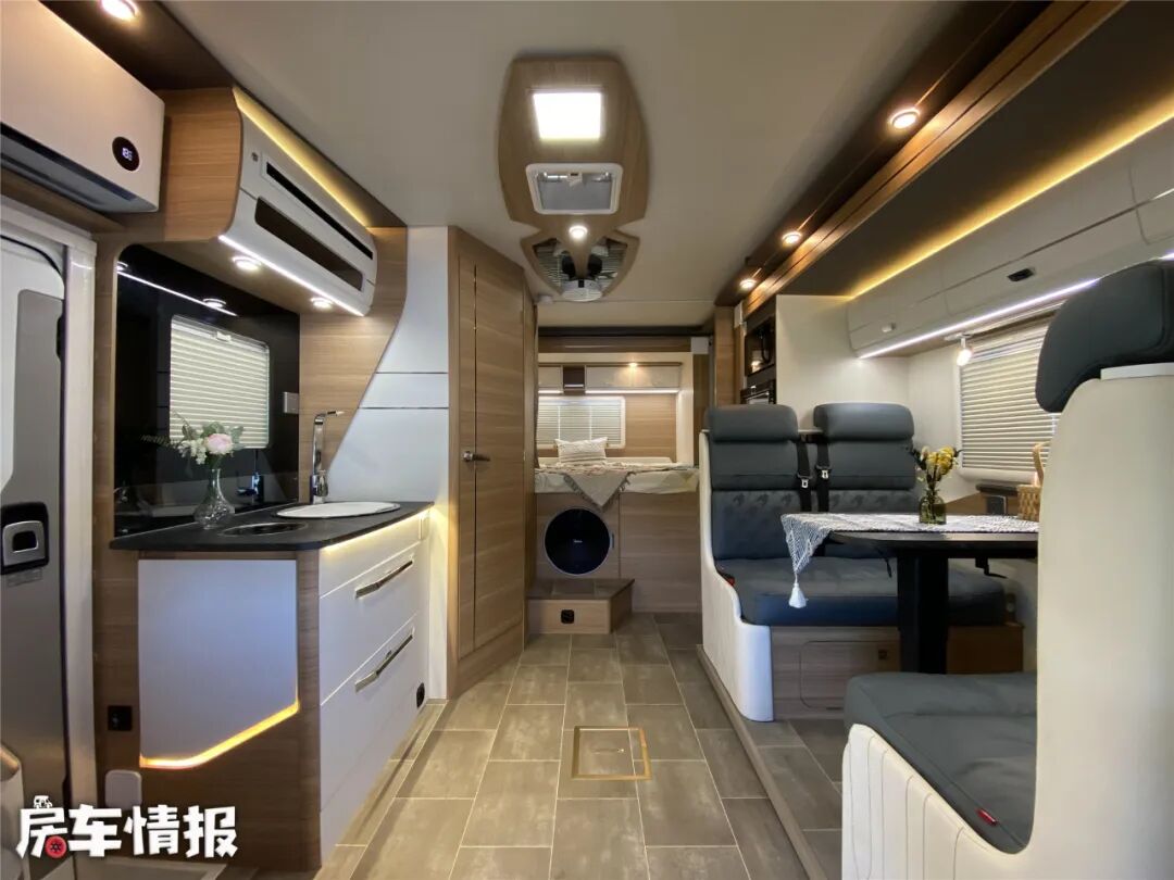 水电路上,这款车是提供了3千瓦逆变器、800安时锂电池、800瓦太阳能电池板、185升净水箱和50升灰水箱,同时车内还提供燃油热水系统,可以做到严寒酷暑都能正常的使用车辆。