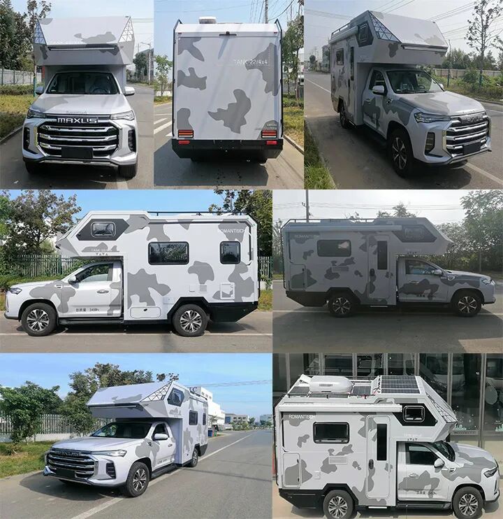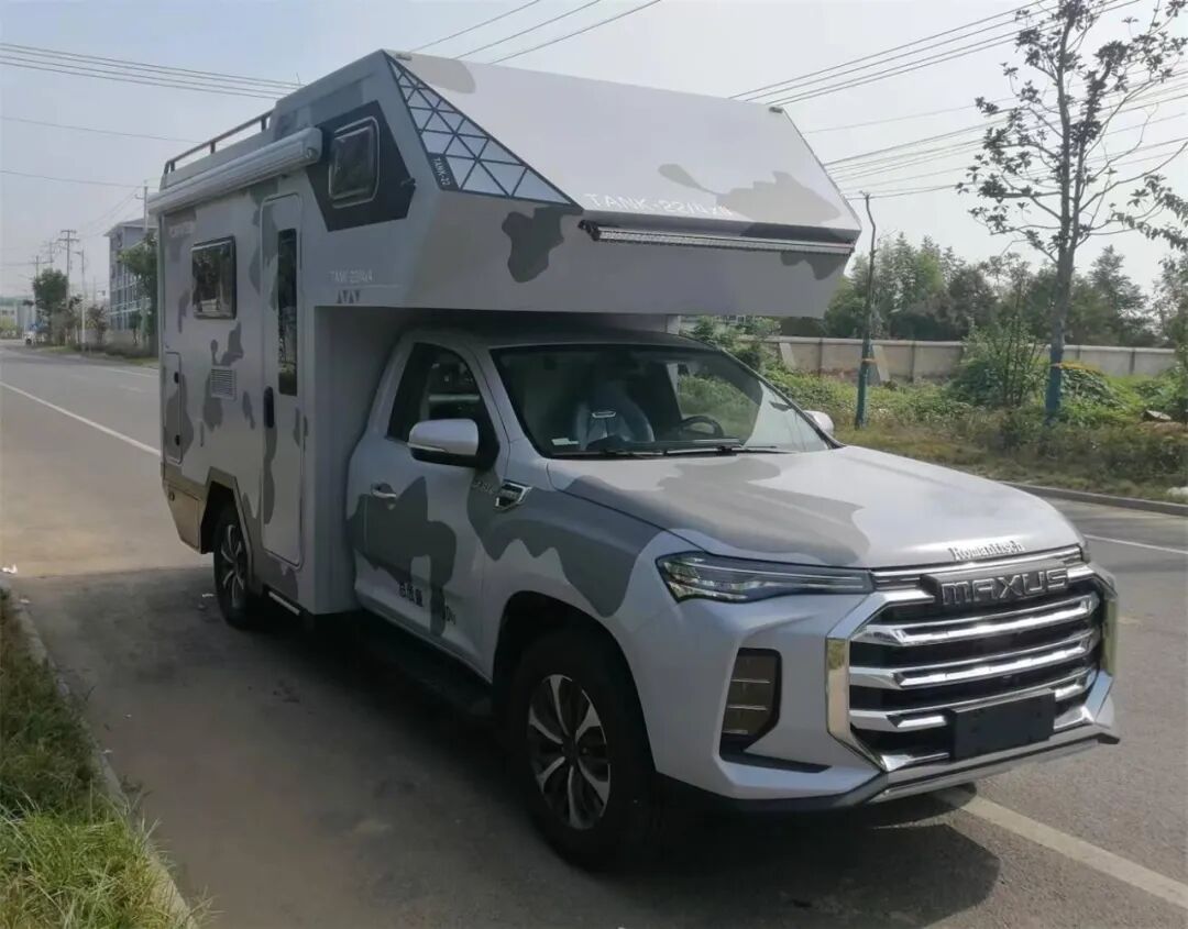 尺寸方面这款车的长宽高分贝为5990*2100/2190*2900/2960毫米,和主流的大通T90底盘的皮卡房车相当,总质量3490千克,同时具有2.5吨牵引资质,方便后期牵引小拖车或者旅居挂车。