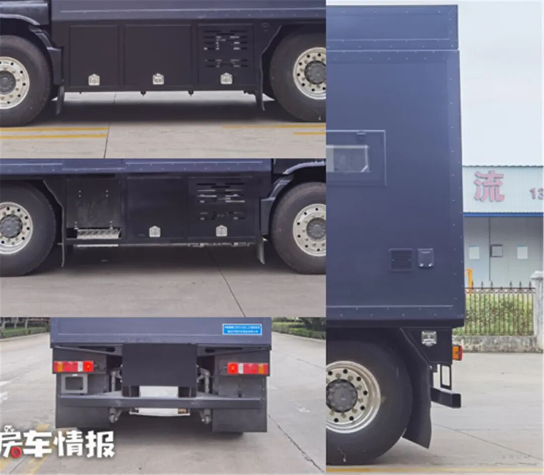 车外部,采用全新设计的驾驶室顶部额头区域,强度更高、保温隔热性更好;无钢板的后空气悬挂系统,日常形式舒适性更高;外部独创净水箱检修口,便于后期清洗/更换净水箱;车尾部容积高达2000升的超大尾箱;