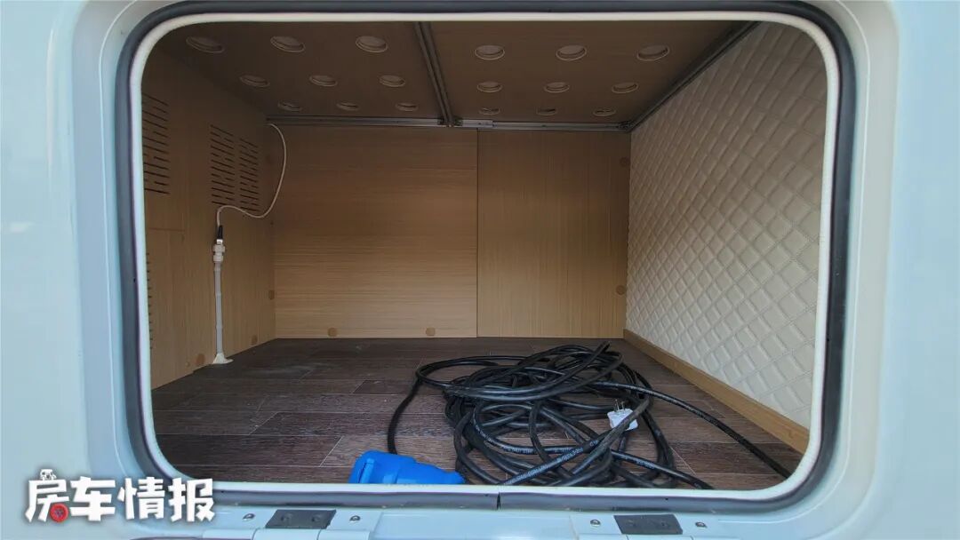 在水电路方面,这款车是配置12伏的电路系统,提供了3千瓦的逆变器、400安时的锂电池、400瓦的太阳能电池板,并提供了120升清水箱和60升的灰水箱。