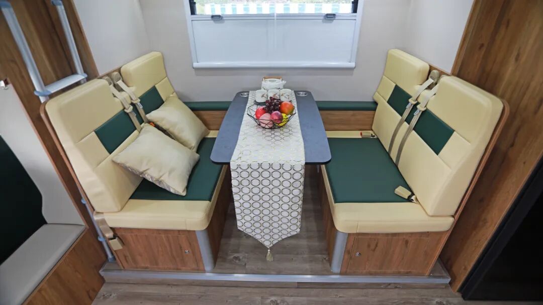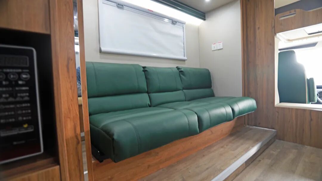 会客厅依靠左+右拓展机制,布局宽敞,使其空间更加宽裕。配备有智能投影仪+幕布,轻松解决旅居途中工作办公不便的难题,闲下来还可以看个电影,吃点零食,轻松惬意。还安装有卡拉OK系统,平时可在会客厅娱乐放松,走一路唱一路,丰富您的旅居生活。