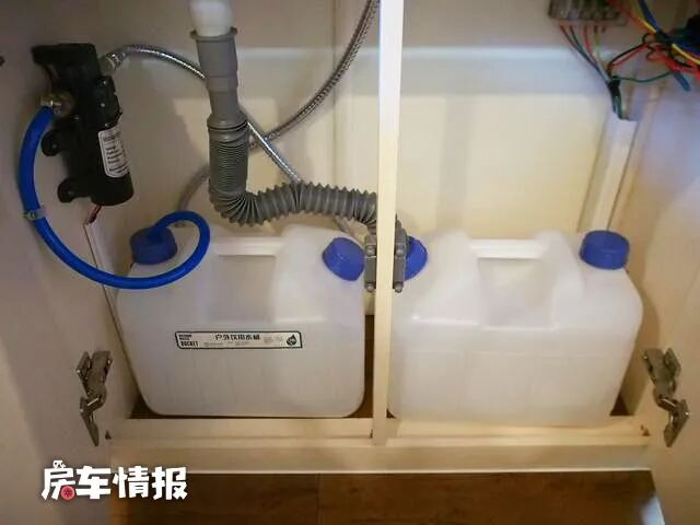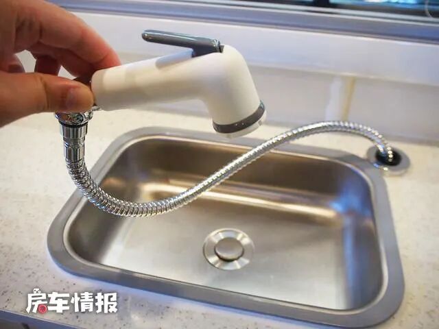 临近乘客门的后方是全车的厨房操作台,上面配备了洗菜池和抽拉式的水龙头,下方则提供了储物柜。