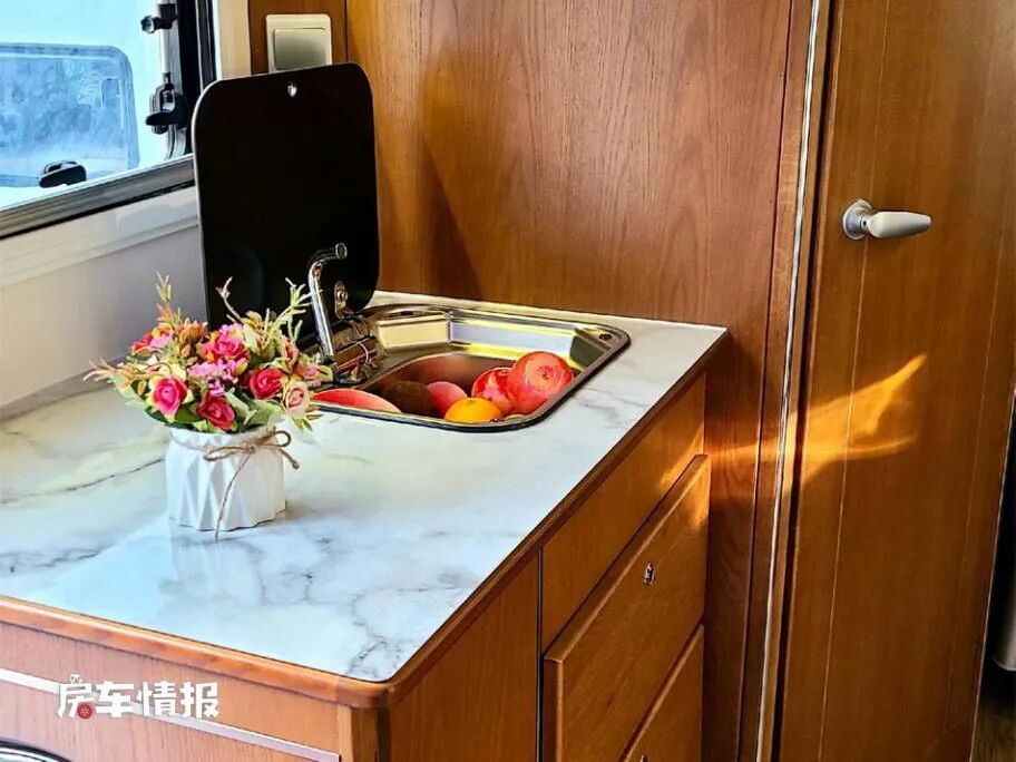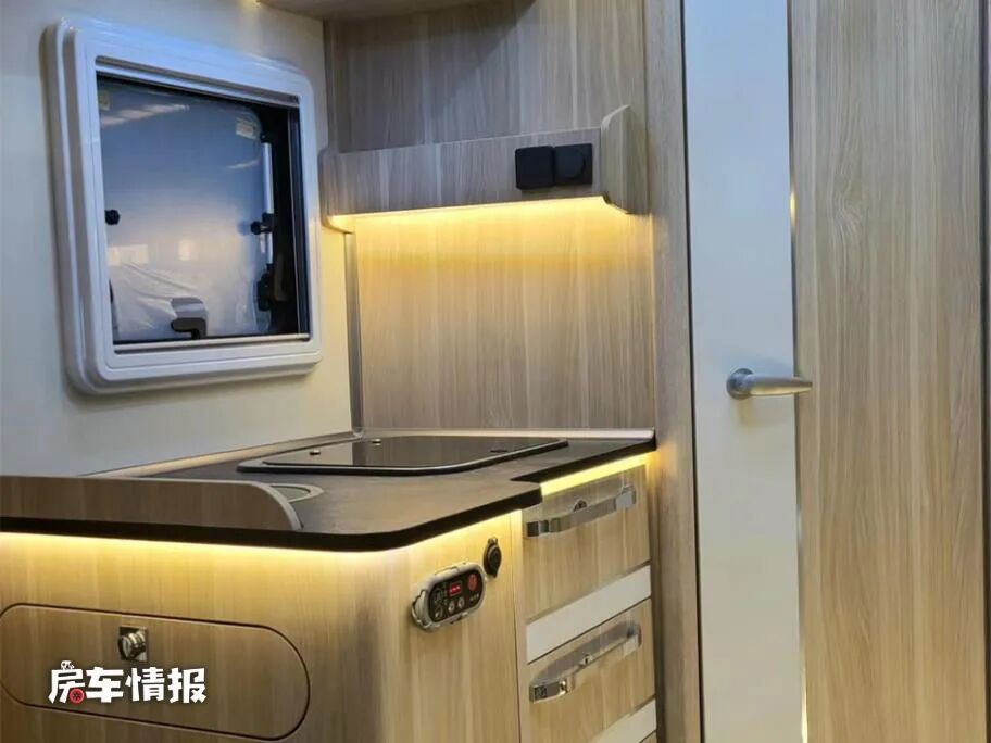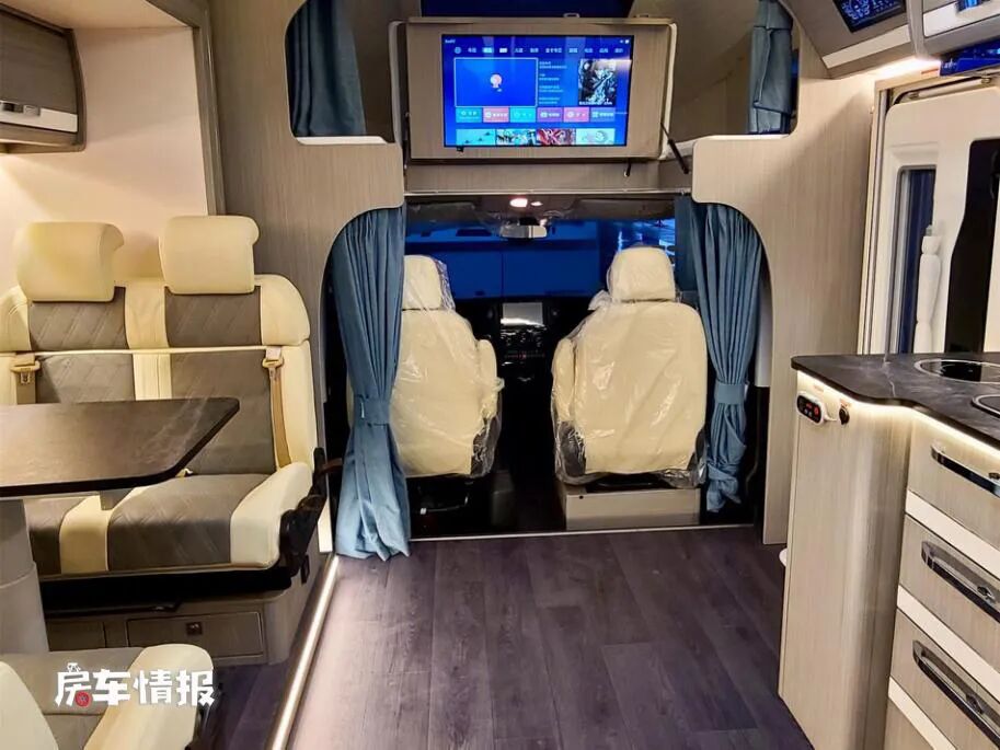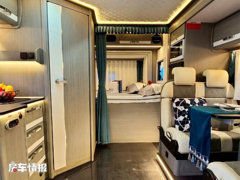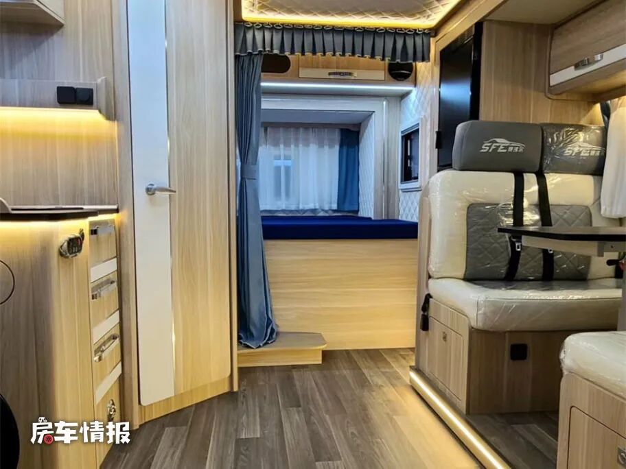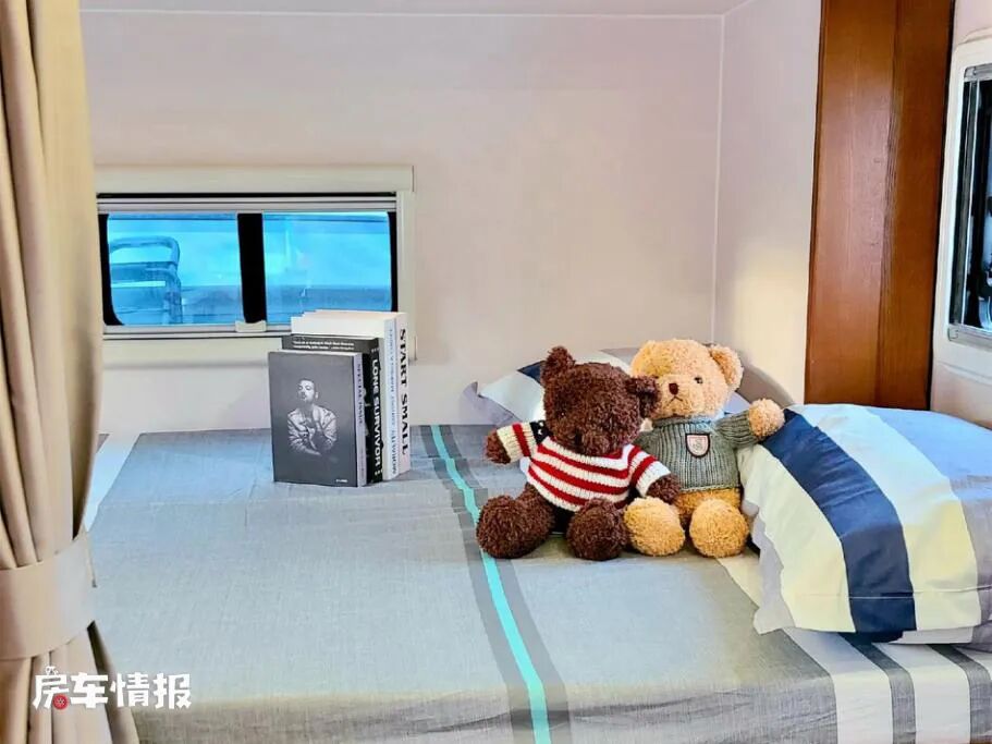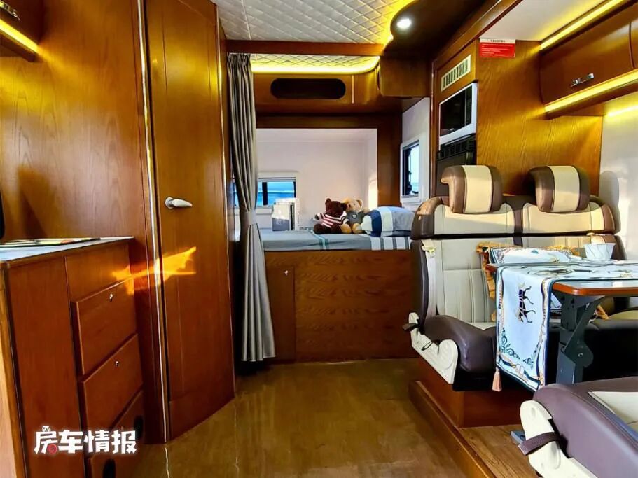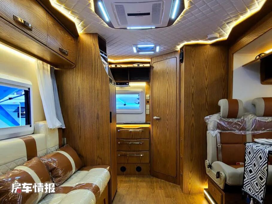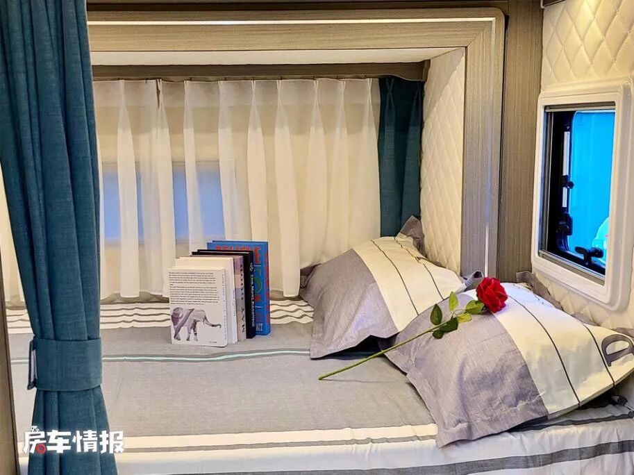 整体的布局和美式风格是一样的,这里就不一一赘述了,有些许改变的是这两款车型的休息区都做了软包处理,防止平时睡觉的时候发生磕碰。