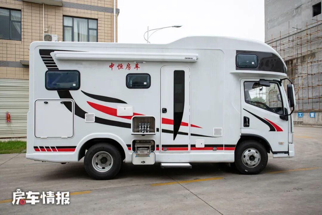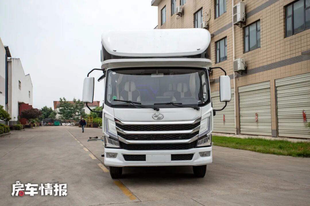 这款轻卡房车是基于上汽跃进H500底盘打造而成的,全车的长宽高尺寸为5995mm*2450mm*3080mm,虽然视觉感上很庞大,但是其实它的总长并不超过6米,还是符合可以上蓝牌的规定的。