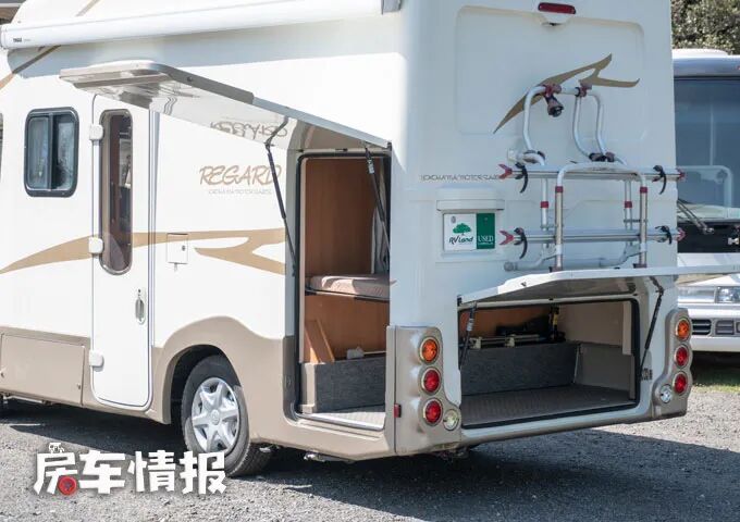 车身外部提供了遮阳棚、储物舱和水电接驳口这些基本的设施。尾部的贯通式储物舱空间十分宽敞,可以容纳多个行李箱。另外在车尾部还带有自行车架,满足爱好骑行的朋友们。