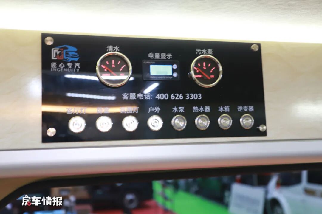 水电方面,这款房车搭载了一台3000W的逆变器,匹配200Ah的铅酸电池,如果有更多的用电需求,后期也可选装磷酸铁锂电池以及太阳能电池板。水路上,提供了110L的净水箱和40L的灰水箱,并且全部采用了304不锈钢材质,用起来也会更加的安心放心。