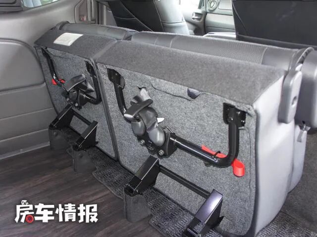这两个座椅带有可翻折的功能,所以平时不需要的时候,也可以折叠起来,为后方的生活区域提供更宽敞的空间。
