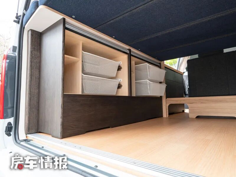 电路上,这款房车搭载了一台逆变器,提供了一块100Ah的充电副电池;水路上则配备了40L的净水箱和13L的灰水箱,整车的水电容量可能连短途旅行的用水用电需求都不能完全的满足,如果后期想要长途旅行,还需要加装更多的水电配置,以此来满足更多的用水用电需求。