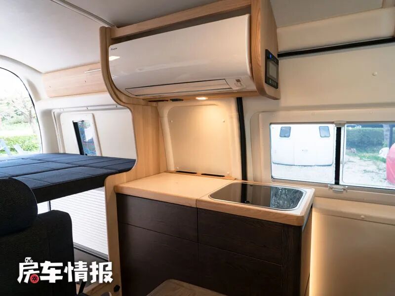 上方安装了一台家用变频空调,可以按需调节车内冷暖。