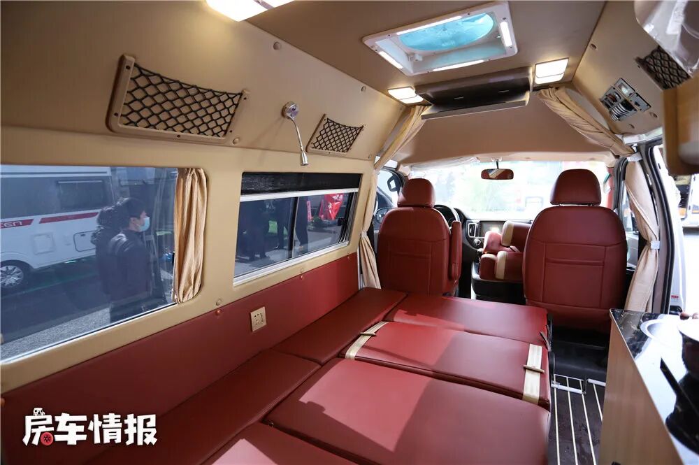进入车厢内部,受到车身尺寸的限制,车内的设置相对来说较为简单,一组四人对卡座沙发,可以满足日常行车以及驻车时家人的乘坐和休息。