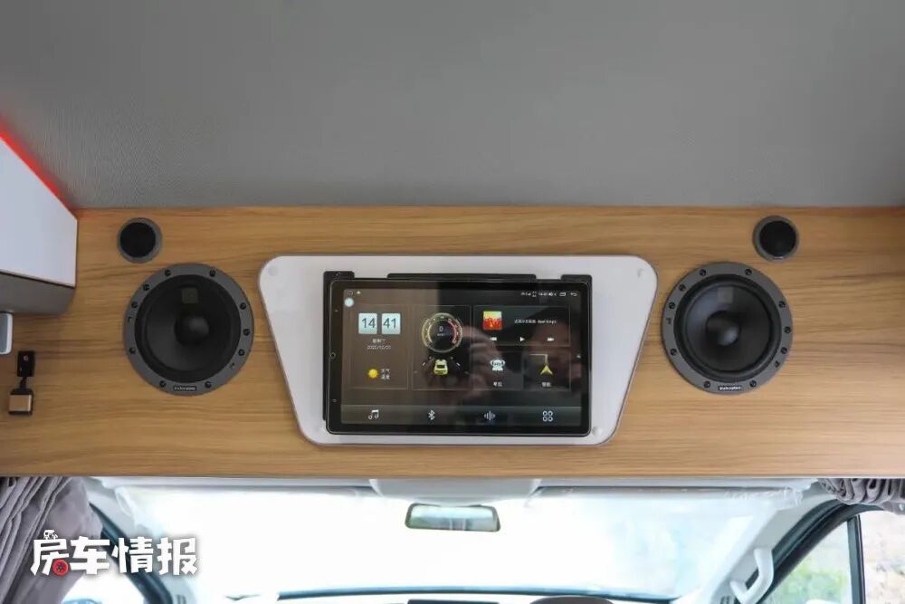 水电方面,全车配备3000W逆变器,400Ah锂电池和200W太阳能;水路上提供100L清水箱和50L灰水箱,两个人的出行用水用电需求还是可以满足的,结合车身外部的水电接驳口,也可以实现随时为房车补给的需求。