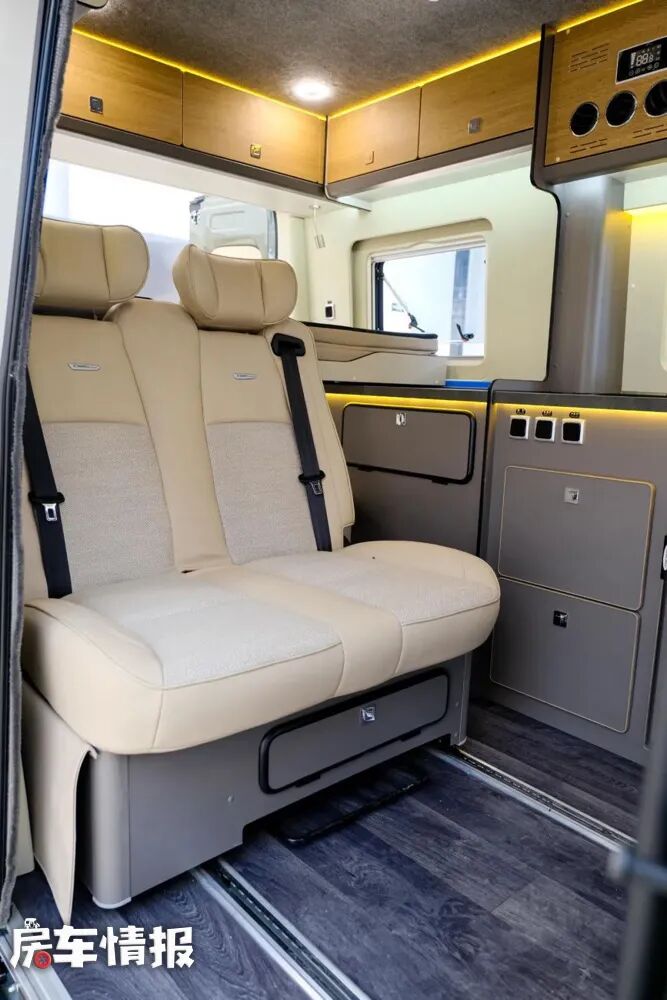 后排的双人座椅同样采用了乘用车级别的设计,可调节椅背角度,减缓长途乘坐的疲劳感。