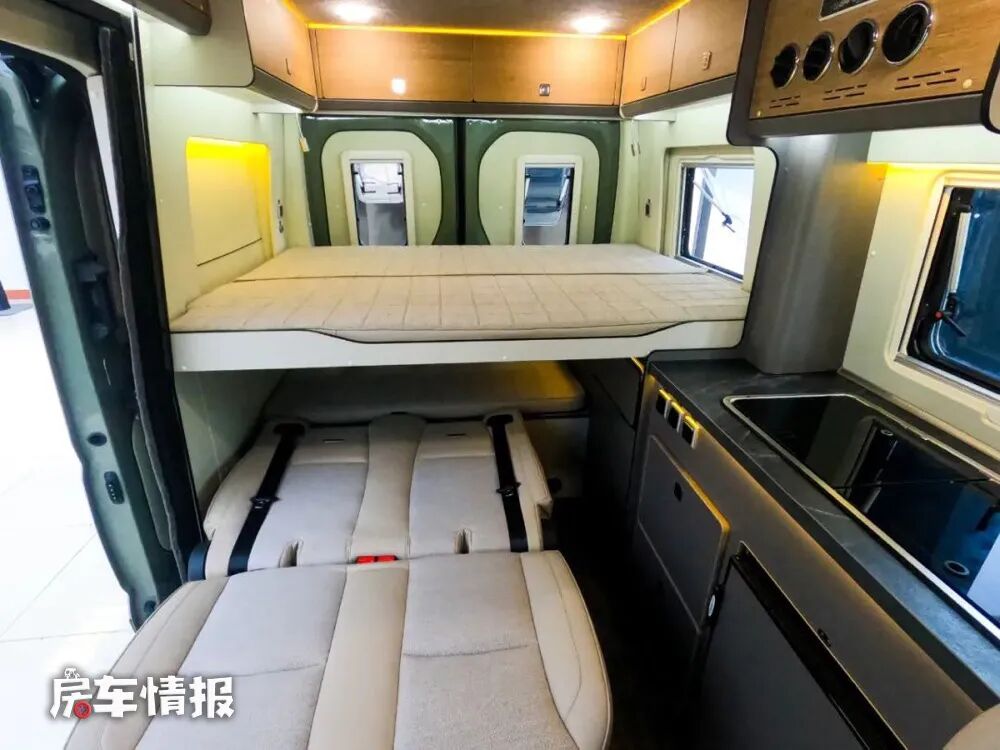 这款房车的最大亮点是提供了可容纳四个人休息睡觉的空间,对于在睡眠空间有强烈需求的人会更加的适合。