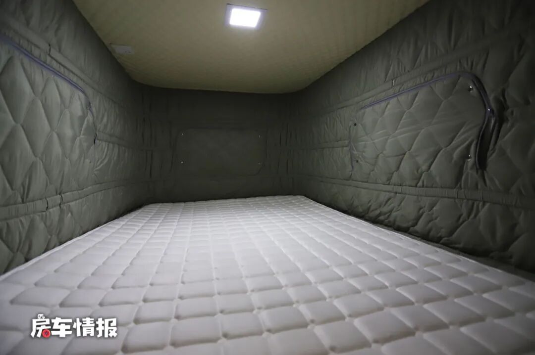 除去乘客区的沙发床,这款房车还提供了一张在升顶内的双人额头床,尺寸为2000mm*1200mm,因为升顶机构为平顶式的,所以内部的尺寸也非常宽敞。