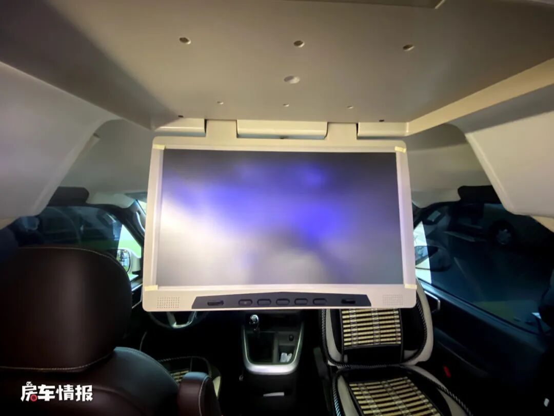 在驾驶室上方顶部还带有一台吸顶电视,也可以满足出行的基本娱乐需求。