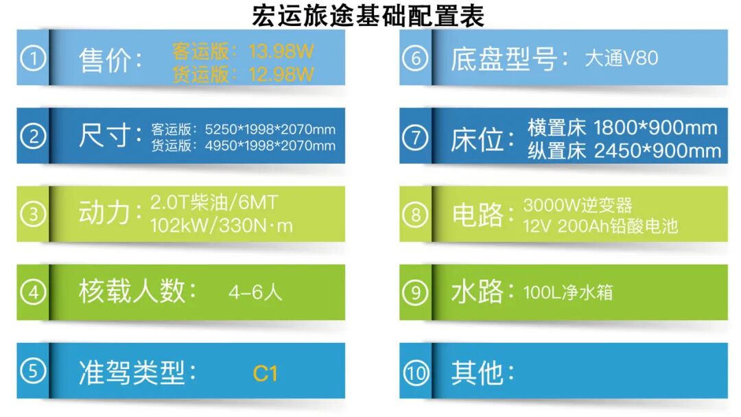 这款搭载了客运版大通V80底盘所打造宏运旅途L11,现在的报价只需要13.98万元,而搭载货运版底盘的M11价格为12.98万元,不过无论哪种配置,这样的价格都可以说是非常亲民的了,不知道您看过之后觉得怎么样呢?欢迎在下方的评论区和我们留言互动,下期再见~