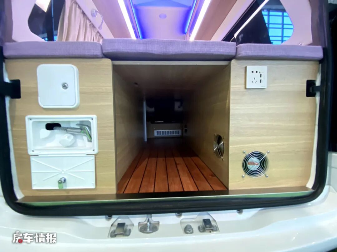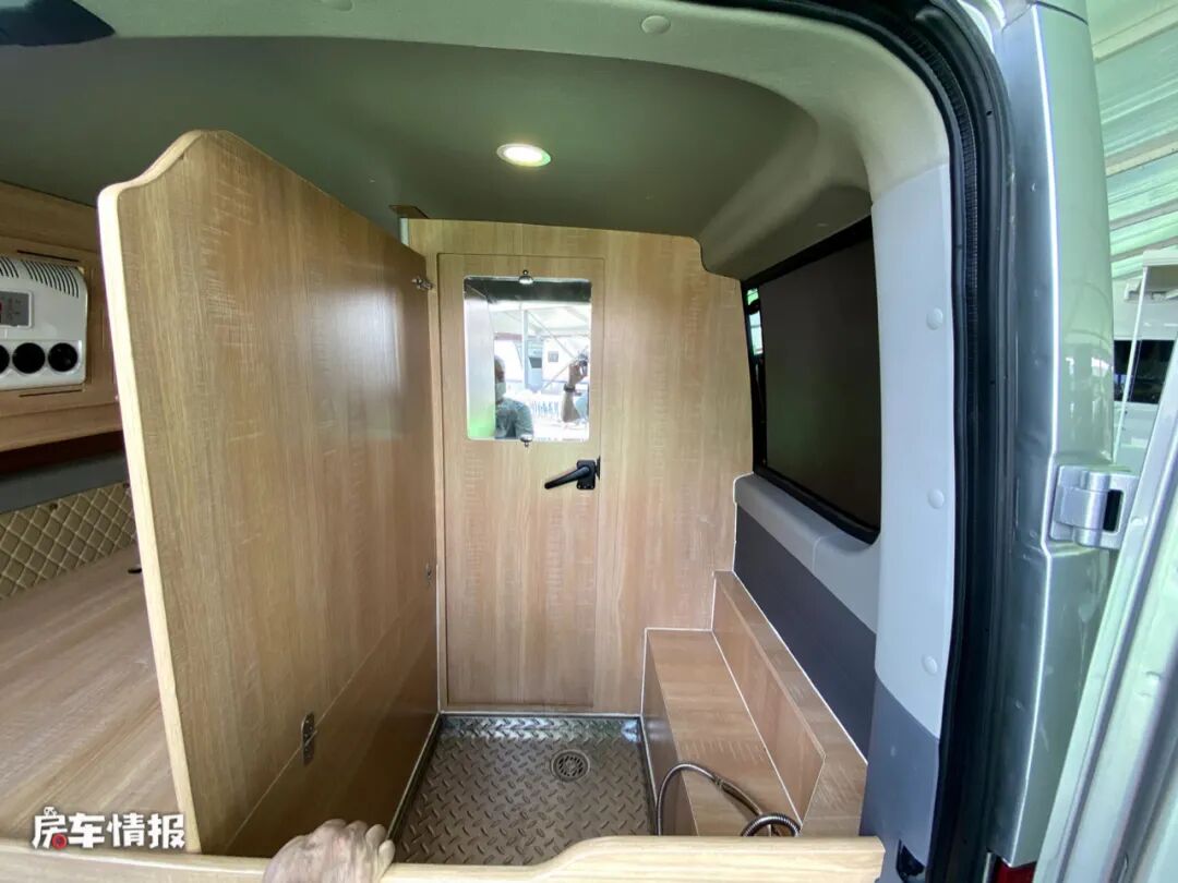 其实更准确的说这辆车更像是一辆床车,因为车内并没有提供单独的卫浴室,只是在车厢尾部配备了一个淋浴花洒,可以满足简单洗漱需求。