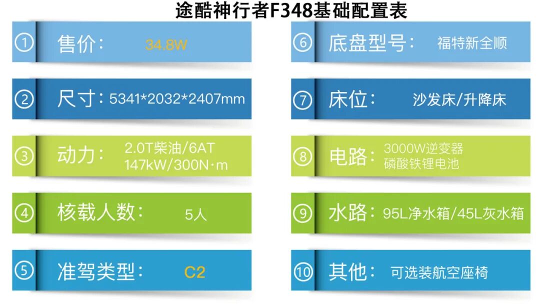 这款基于福特新全顺底盘所打造的途酷神行者F348房车,整体来说采用了途酷房车内部的一贯布局,隐藏式的卫浴室很好的解决的中轴底盘较为短小的空间问题,现在这款房车的报价为34.8万元,不知道您觉得整体的性价比如何呢?欢迎在下方的评论区和我们留言互动,如果您想了解更多的房车资讯请继续关注我们,下期再见~