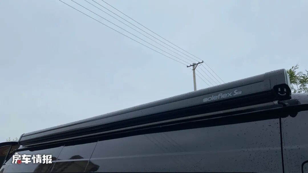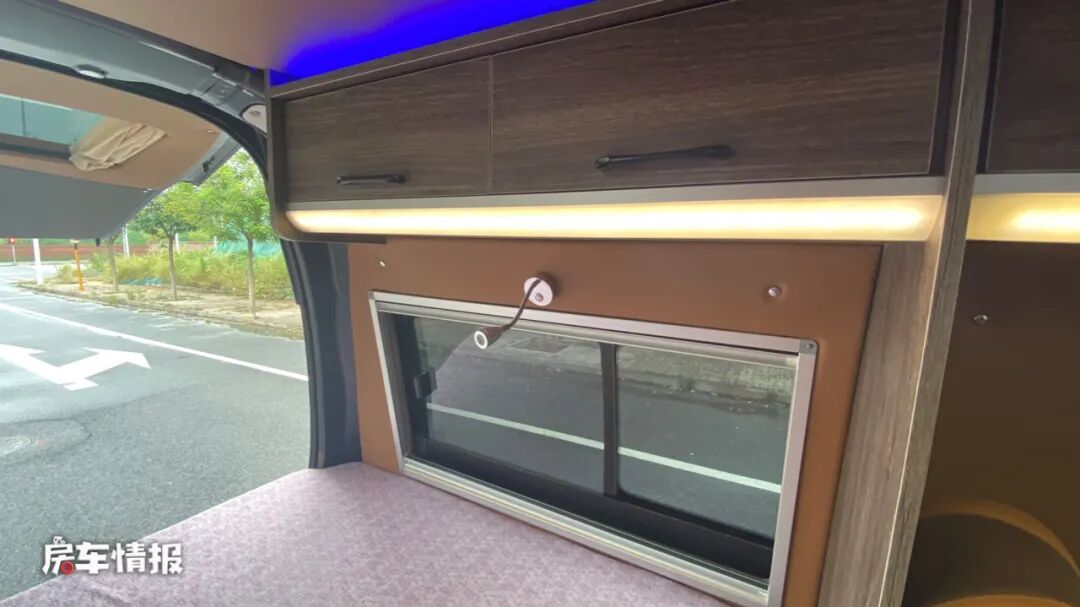 车身外部配置较为简单,右侧上方带有手动的遮阳棚,后侧则提供了一台抽拉式的燃气灶,平时天气好的时候也可以选择在车外进行烹饪。