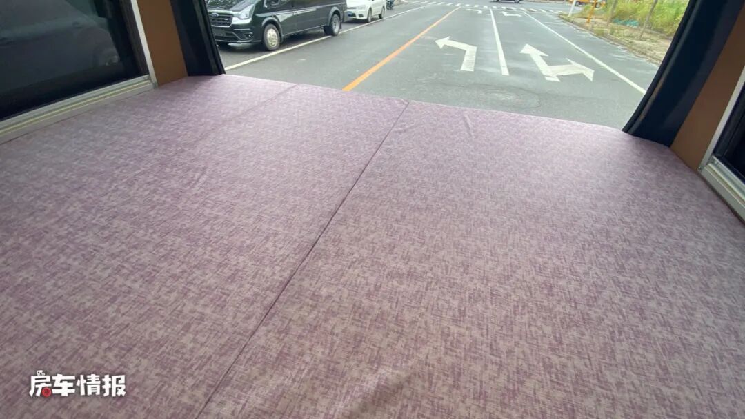 从车身右侧的电动踏步进入车内,整体内部的装饰风格还是比较沉稳的,十分呼应车身外观的配色。