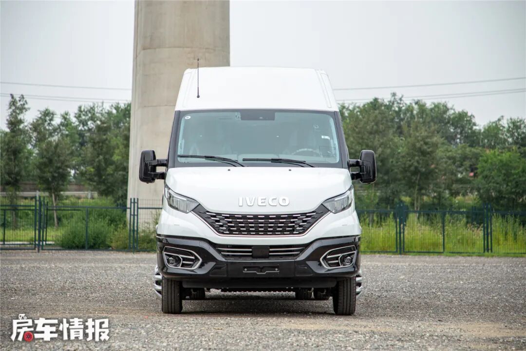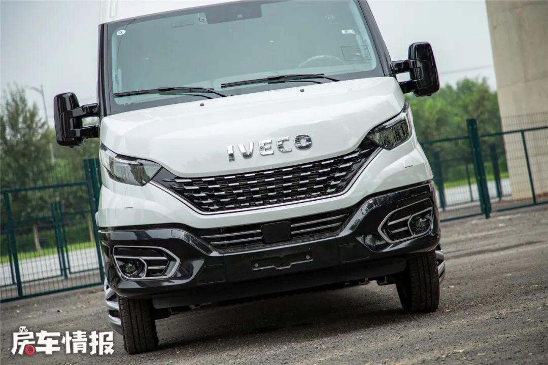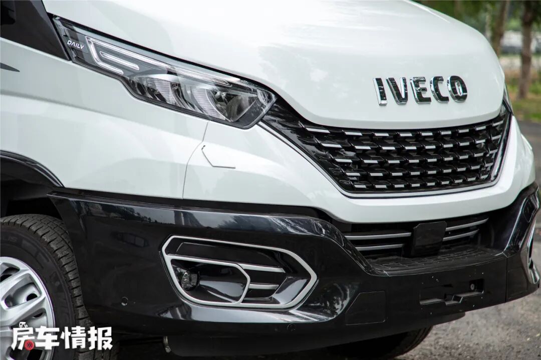 外观上和国产依维柯欧胜明显不同的地方是车头部分的造型设计,尺寸更大的点阵式中网看起来比较霸气,中网与前大灯组融为一体,也提升了车头的横向张力,再加上车头上窄下宽的造型,整个车头看起来比较敦实。哦对了,这款车的前灯组采用全LED,夜晚照明强度更好。