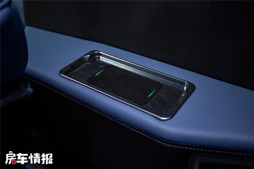 在小功能上也比较细致,座椅两侧到带有小尺寸触摸屏和无线充电板,可以为乘客提供比较便捷的使用感受。