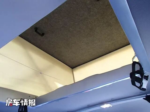 除此之外,顶部的升顶机构内的双人床则可以满足另外两名成年人的睡眠需求,所以这辆车最多可以容纳四个人使用。