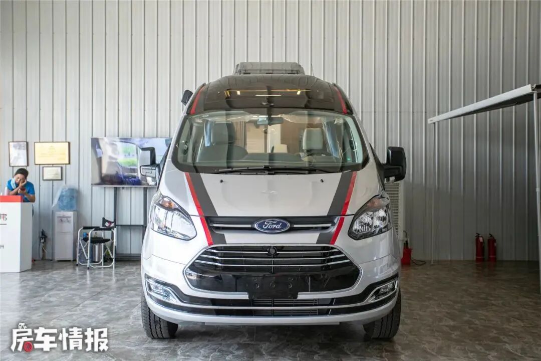 全车外观采用了耐用紧脏的金属灰色,搭配红黑色的彩带,也提升了整体的运动风格,车型外观基本保留了原底盘的设计,但是后方两侧的窗户进行了凸起盲窗式的设计,这样的设计可以为内部的横置尾床增加空间,不至于特别拥挤。除此之外,车身外部配置了遮阳棚以及基础的水电接驳口,方便日常使用。