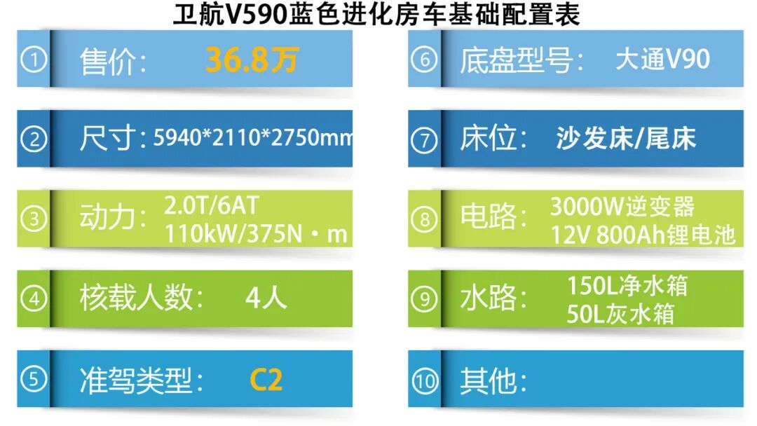 这款搭载大通V90底盘所打造的一款全新卫航V590蓝色进化房车,现在的官方指导价为36.8万元,不知道您结合整体的配置觉得这款车如何呢?欢迎在下方的评论区和我们分享您对此车的看法,如果您想了解更多的房车资讯和视频,请继续关注我们,下期再见~