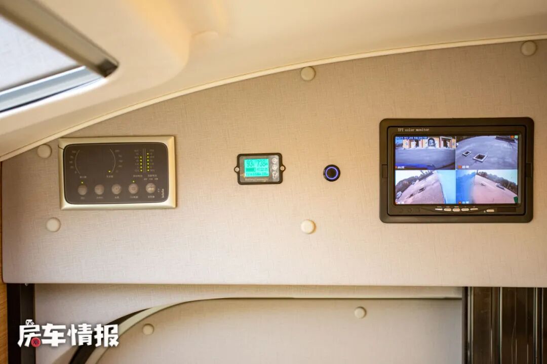 电路上,这款房车搭载了一台3000W的逆变器,提供12V 800Ah锂电池;水路上则拥有150L的清水箱和50L的灰水箱,同时全车还配置了伟巴斯特的柴油暖风热水系统和顶置空调,以保证日常使用。