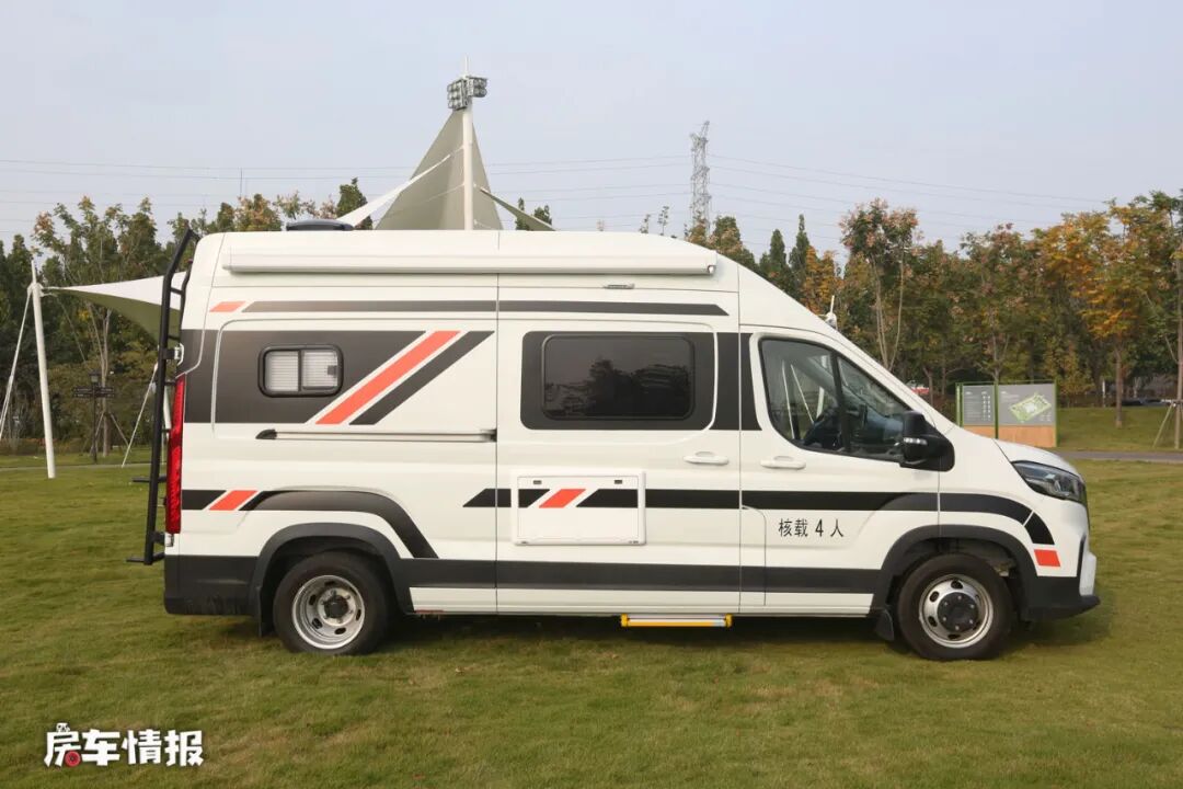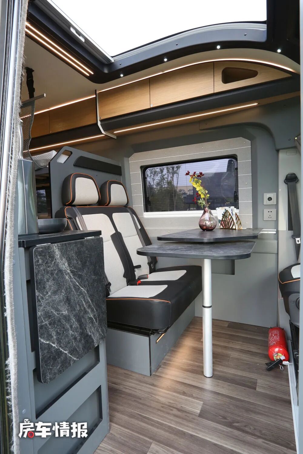在车身尺寸方面,全车的长宽高分别5940*2110*2800mm,如果后期选装顶置空调,高度可达2948mm,不过即便如此整体的车身高度也不足三米,平时行驶上路时通过率更高一些,与此同时,全车还降低了整体的车辆中心,可以使日常行驶更加平稳。