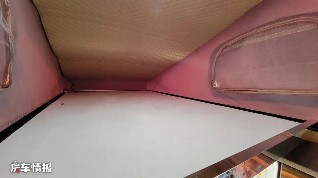 不升顶时车内的高度只有1.5米左右,不符合新规的1.75米规定,但是这款房车在顶部加入了升顶机构,将其打开后,车内的高度就可以正常站立满足新规了。