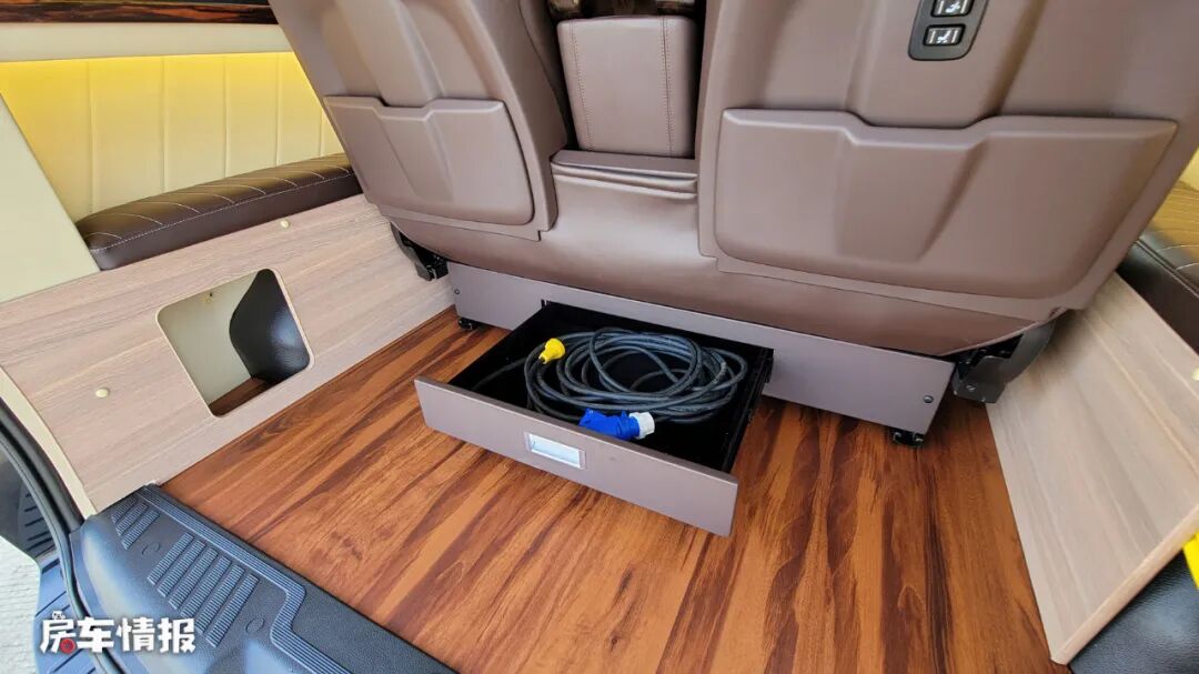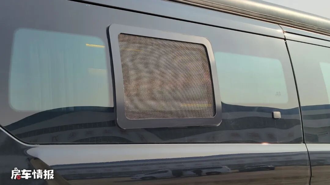车身外面的生活配置相对比较简单,带有遮阳棚与水电接驳口,以满足基础的需求,车身玻璃都采用熏黑的隐私玻璃,后方还带有金刚纱网,以防止蚊虫的进入。